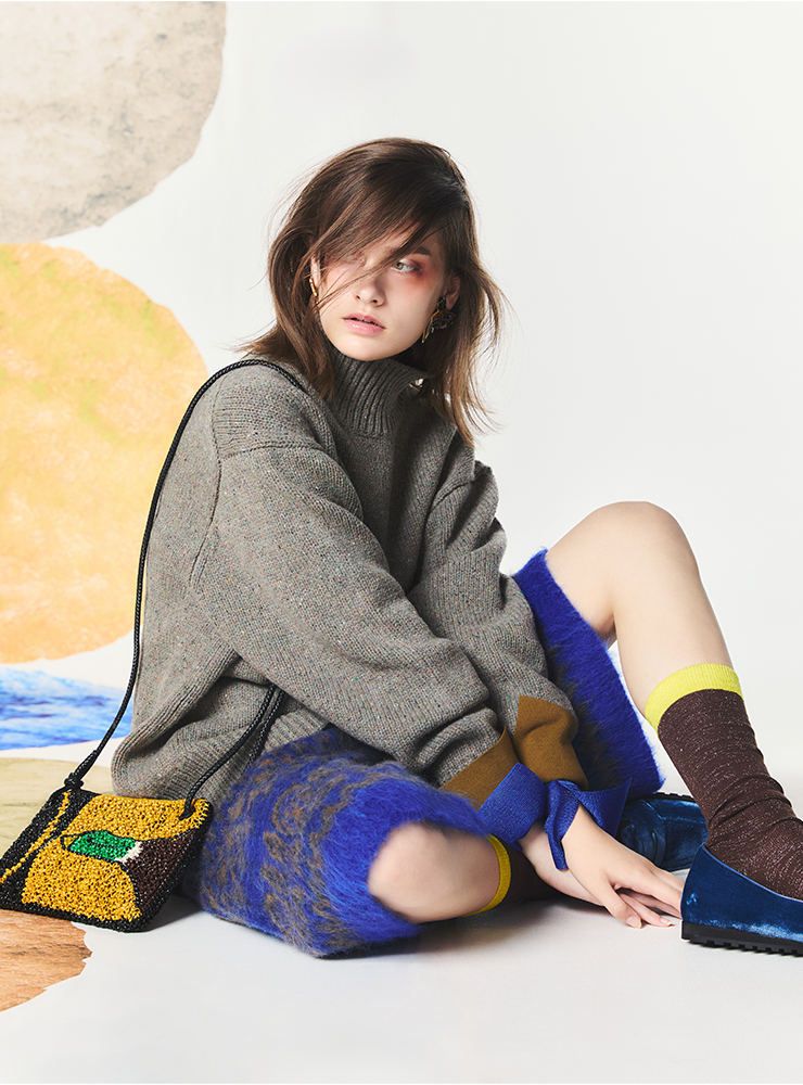加藤泉反覆在作品中探索「抽象与具象」的主题,而又不时流露出孩童般的惊奇与神秘。 他的作品中充满玩味的形式,有机的形状,鲜明却又暗沉的色彩,是ANTEPRIMA 2025秋冬系列的灵感之源。 抽象的艺术概念与服饰设计融合,打造出ANTEPRIMA独一无二又引人注目的秋冬魅力。 这份灵感通过充满想像力的设计转化为2025秋冬系列,模煳艺术与时尚之间的界限,传达出令人耳目一新的迷人美学。